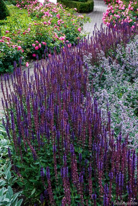 Szałwia omszona doskonale komponuje się z innymi roślinami rabatowymi, tworząc efektowne zestawienia. Świetnie wygląda w towarzystwie roślin o różnych kształtach i fakturach, takich jak: