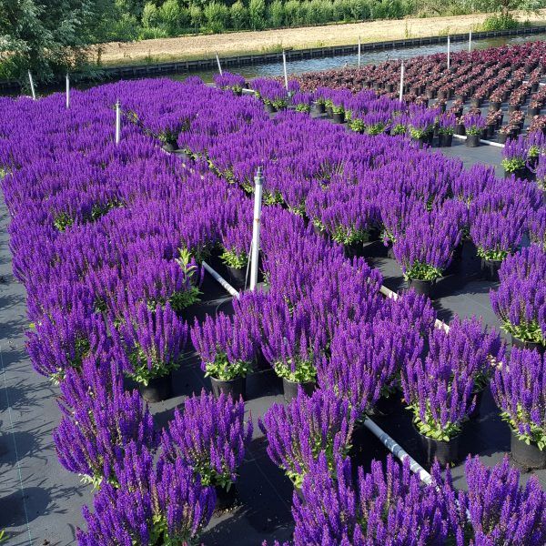 ’Caradonna’ to odmiana, która natychmiast przyciąga wzrok. Jej smukłe, ciemnofioletowe kwiatostany osadzone są na niemal czarnych łodygach, co nadaje jej wyjątkowy, elegancki charakter. Dorasta do 70 cm wysokości, dzięki czemu świetnie komponuje się na rabatach.