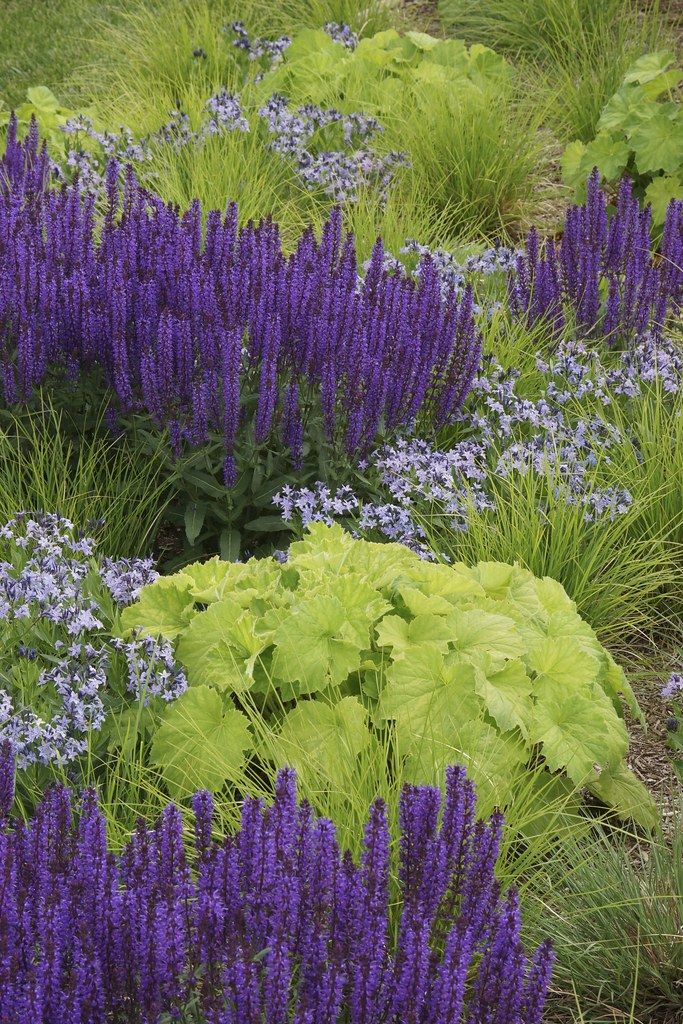 Aby podkreślić intensywną barwę szałwii, warto zestawiać ją z roślinami o kontrastujących kolorach. Dzięki temu ogród nabierze głębi i wyrazistości.