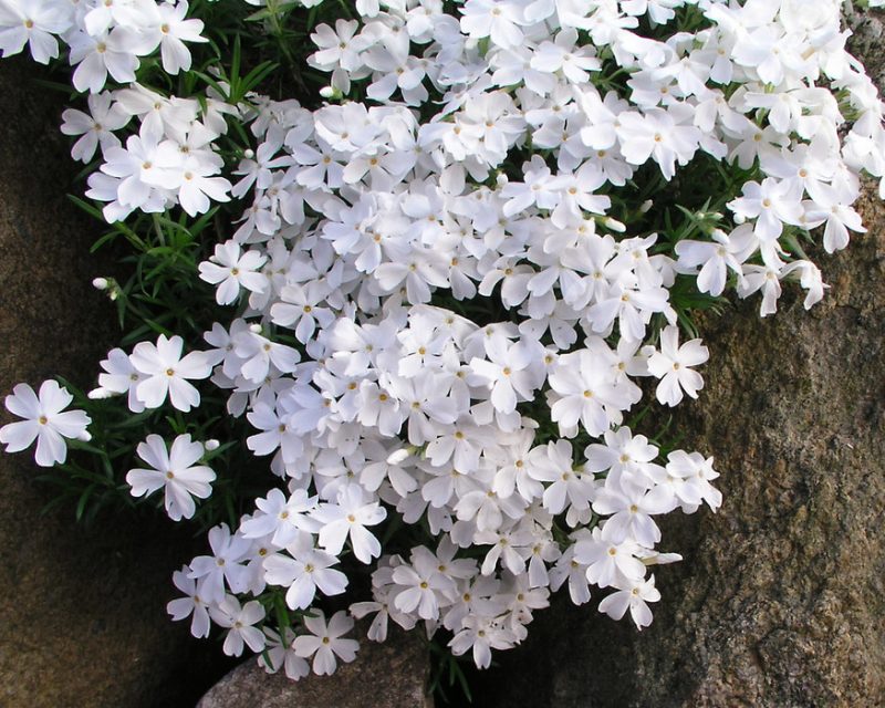 Floks szydlasty Spring White Bylina tworząca wiecznie zielone maty o igiełkowatych liściach, pokrytych masą białych kwiatów, które pojawiają się w kwietniu To nieskazitelne piękno rozprzestrzeni się, pokrywając każde otwarte słoneczne miejsce. Imponujący kontrast między energicznymi, zimowozielonymi liśćmi a błyszczącymi białymi kwiatami inspiruje niejednego miłośnika roślin. Osiąga wysokość około 15 cm.
