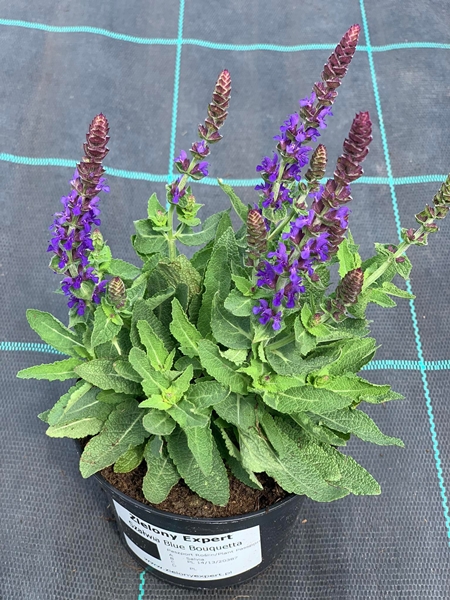 Szałwia omszona Blue Bouquetta –wyróżnia się dużymi kwiatami oraz niezwykle nasyconą barwą kwiatów w fioletowo-niebieskiej tonacji. Niska odmiana dorastająca do 30- 40 cm wysokości i średnicy do 50cm, więc jest idealną propozycją na różnego rodzaju obwódki. Jest bardzo dobrze rozgałęziona, co oznacza ogromną ilość kwiatów. Rośliny są gęste i jednolite i wyglądają jak mały bukiet. Kwitnie od czerwca przez wiele tygodni, przekwitające kwiatostany można ściąć aby roślina ponownie zakwitła.