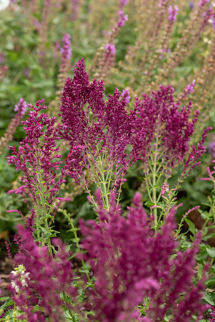Kwiaty: różowo-purpurowe, gęste kłosy; barwa utrzymuje się długo