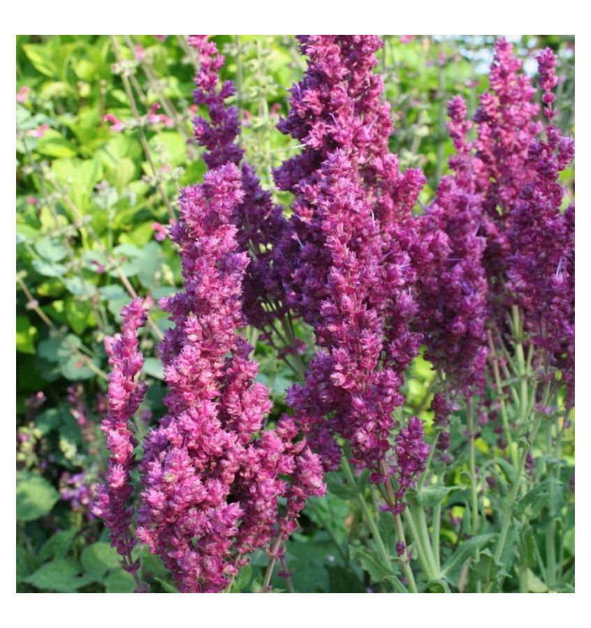 Szałwia omszona ‘Schwellenburg’ (Salvia nemorosa) to zwarta, kępiasta bylina o pionowych kłosach różowo-purpurowych kwiatów, które pojawiają się od czerwca i trwają całe lato, często powtarzając kwitnienie po ogławianiu. Szarozielone, aromatyczne liście tworzą eleganckie tło dla kłosów i utrzymują walory dekoracyjne przez cały sezon. Dorasta do 50–60 cm wysokości i 40–50 cm szerokości, zachowując stabilny, wyprostowany pokrój. Kwiaty są miododajne, intensywnie wabią pszczoły i motyle, a sama roślina jest łatwa w uprawie, odporna na krótkotrwałą suszę i rzadko porażana przez choroby.