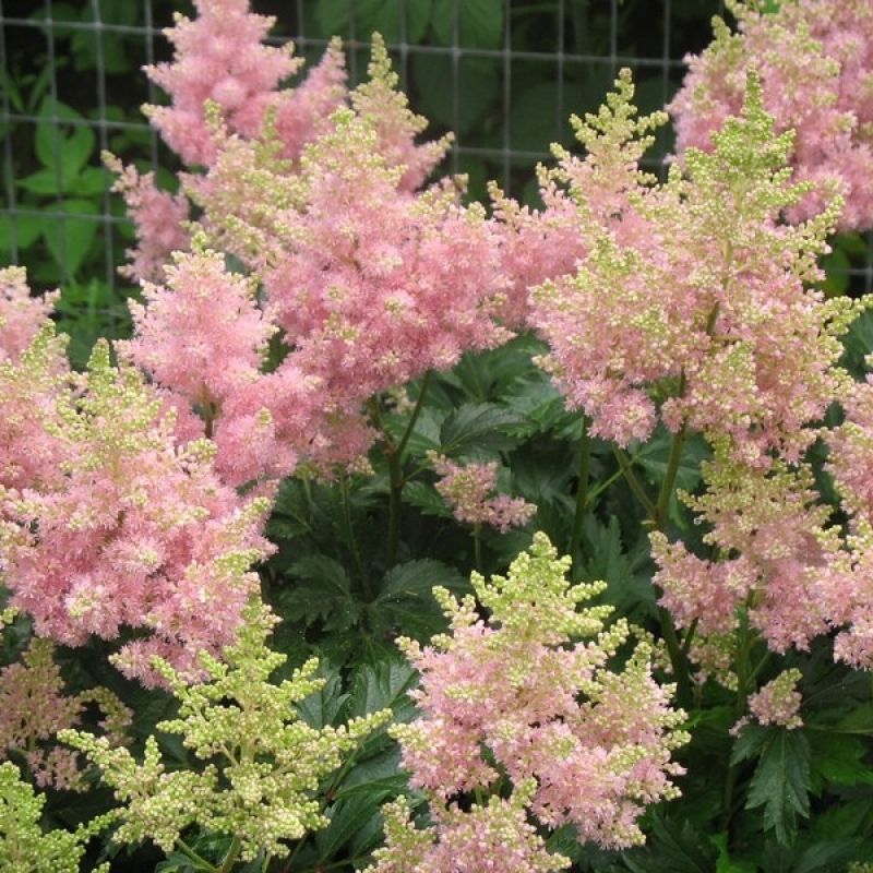 Kwiatostany: pierzaste wiechy, odcienie łososiowego różu, bieli i brzoskwini