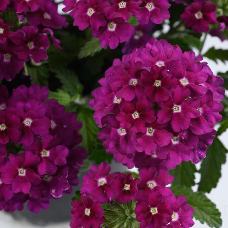 Verbena Vanessa Magenta to efektowna odmiana werbeny ogrodowej, wyróżniająca się intensywnie magentowymi kwiatami o głębokim, nasyconym kolorze, widocznym z dużej odległości. Kwiaty zebrane są w zwarte, regularne baldachogrona, które obficie pojawiają się od późnej wiosny aż do jesieni, zapewniając długotrwały i stabilny efekt dekoracyjny. Odmiana ceniona jest za niezawodne kwitnienie, wysoką estetykę oraz dobrą tolerancję na warunki letnie.
